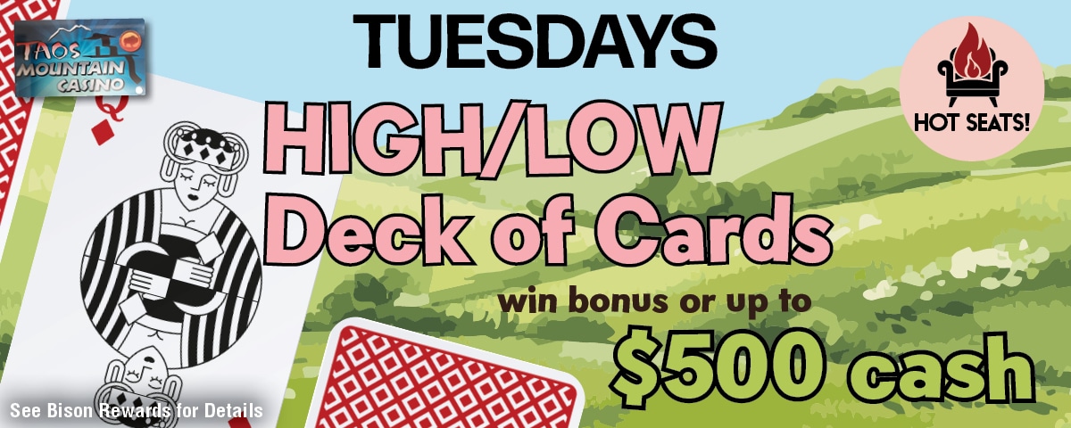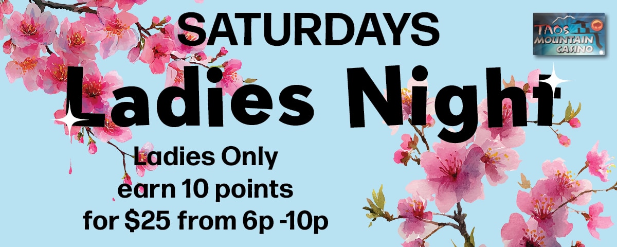 Taos Mountain Casino is open Sunday through Thursday from 10 AM to 10 PM; Friday and Saturday from 10 AM to 12 AM. Our Casino is a 100% non-smoking atmosphere! And whether you’re planning a visit to Taos or live in our area, make sure you join our Bison Rewards Club… you’ll always be entitled to great savings and discounts throughout our Northern New Mexico casino and, of course, membership in the TMC Bison Rewards Club is always free! Size does matter, our smaller casino offers you much better odds to win cash and prizes.