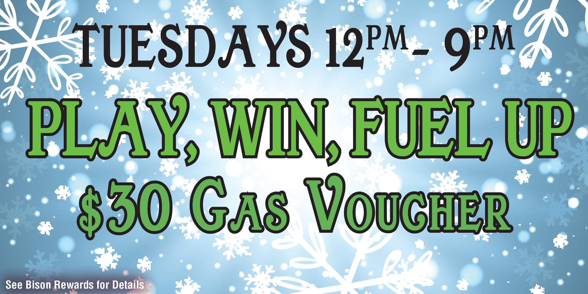 TUESDAY -Hot Seat- Bison Card Holders who earn 15 points will have the opportunity to win $30 in a Hail Creek Trave Center Gas Voucher. Guests can win only once per Tuesday
